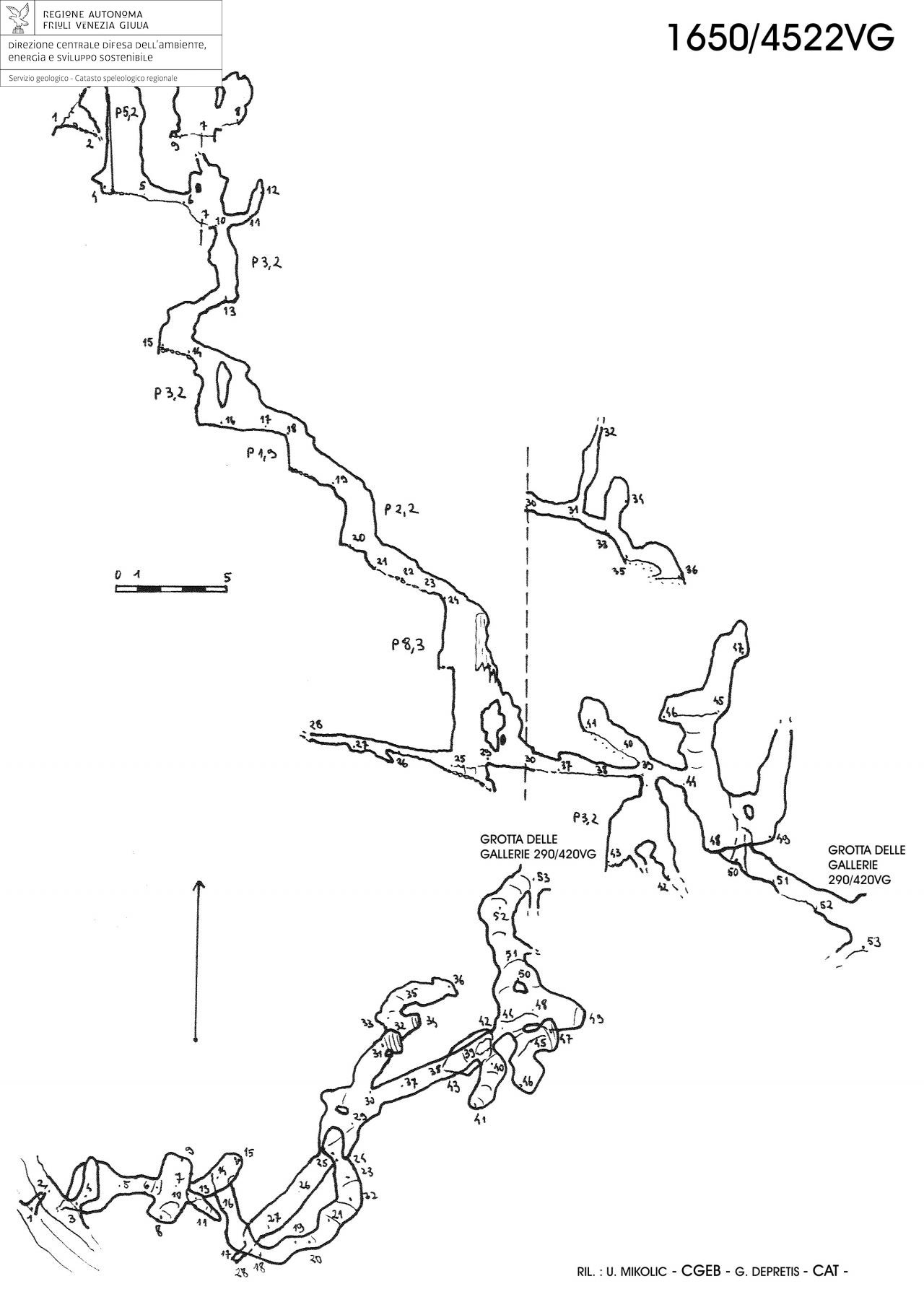 Nella seconda metà del 2004 un lavoro di scavo alla base del pozzo iniziale ha permesso di accedere ad una serie di pozzetti intercalati da brevi meandri, tutti allargati artificialmente fino alla profondità di m 25 fino a raggiungere un pozzo di m 8,3 abbastanza largo e ben calcificato. Alla sua base si sviluppano tre cunicoli distinti: quello verso SW si presenta concrezionato, in lieve salita ed è lungo m 6; quello verso NE è in discesa, alquanto fangoso e lungo m 7; quello verso E sprofonda dopo m 7 in un pozzetto a campana di m 3,2. Oltrepassato tale pozzetto, la grotta prosegue con un breve pozzo parallelo sovrastato da un camino inclinato. Alla sua base un cunicolo in discesa di quasi m 8 immette nella Grotta delle Gallerie (290/420VG), in corrispondenza di un pozzo laterale della galleria principale esplorata nel 2003.