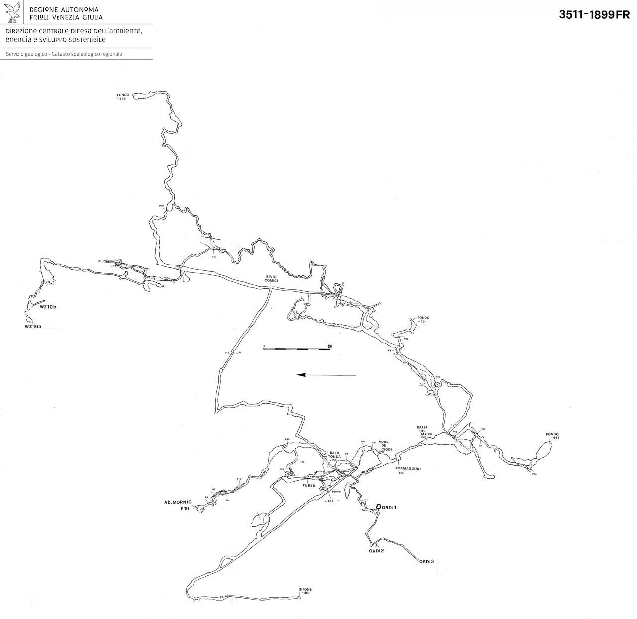 (La descrizione sovrastante è tratta dall'articolo: - Nuove esplorazioni all'abisso "G. Mornig"-, P. Guglia e F. Gherlizza del 1981, i numeri si riferiscono al rilievo del 1981)