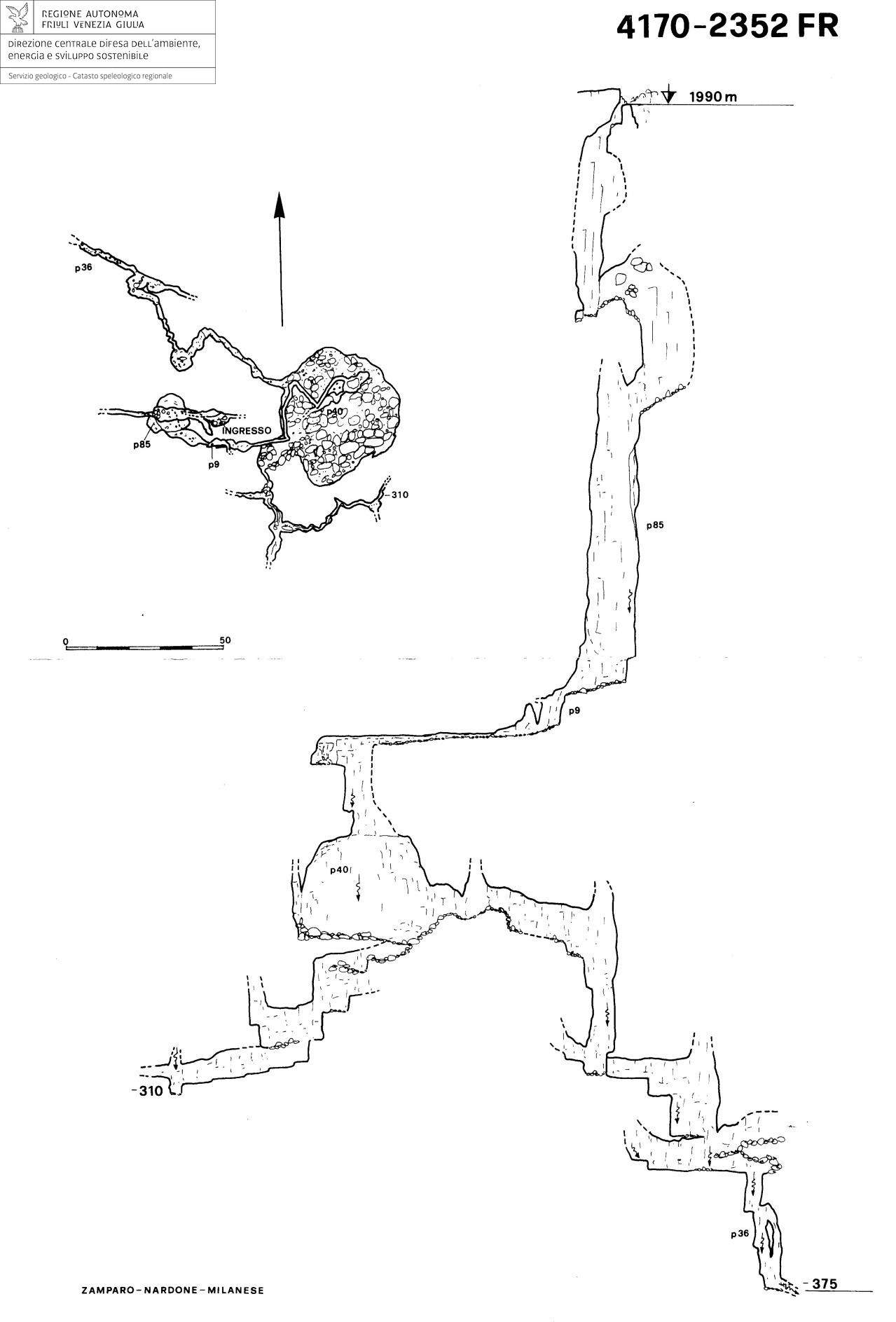 La posizione è stata trovata facendo una poligonale chiusa di precisione che collega, oltre una serie di cavità conosciute, una serie di punti fissi ben posizionati e riconoscibili sulla cartografia al 5000.