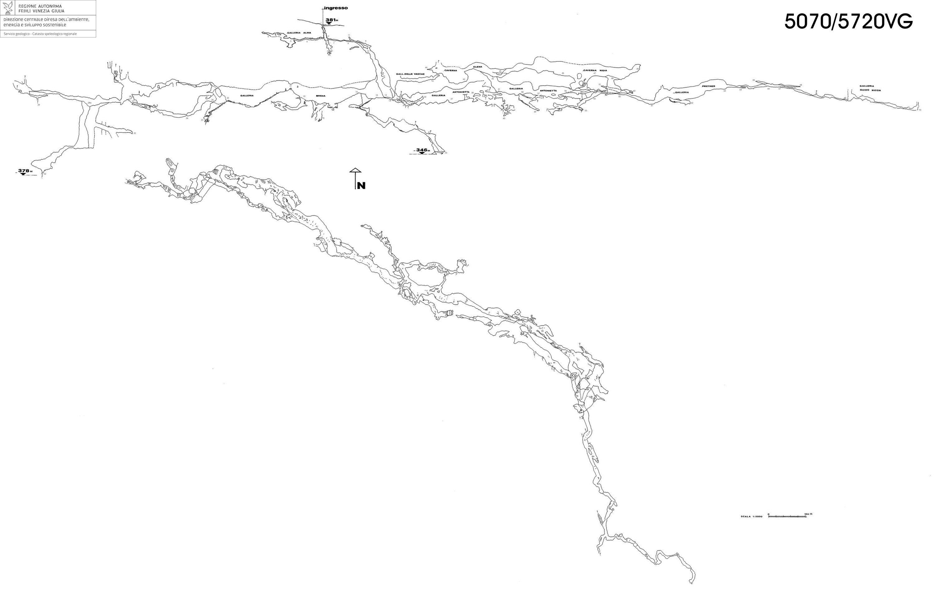 In direzione NW si sviluppa la Galleria Brena, larga in media 30 m e alta 30/40 m con uno sviluppo complessivo di circa 1000 m. In fondo a questa galleria si apre, a 60 m di altezza, la Galleria Dimenticata; qui, verso la fine del 1996, è stata trovata una prosecuzione (Galleria Hanke) che ha permesso di raggiungere il bordo di un secondo enorme pozzo interno, profondo 110 m e largo in media 20/30 m. Sul fondo di questo, una galleria fangosa in forte pendenza porta alla massima profondità della grotta, -378 m. In questa parte della cavità s'incontrano acque di fondo che risalgono per un dislivello stimato nell'ordine dei 60 m. Ritornando alla base del pozzo di 140 m, sul lato N ha inizio un ramo discendente, che si sviluppa in direzione E per circa 300 m, largo in media 10 m e alto 10/15 m e che conduce, con ambienti molto fangosi a due laghetti alle profondità rispettivamente di –341 e –346 m.