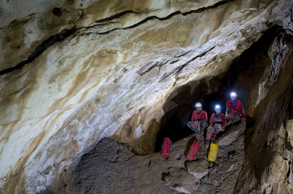Descrizione: La congiunzione tra la Grotta Palpiccola o Freezer e la Grotta del Passo Monte Croce Carnico avviene attraverso un cunicolo frutto diun importante scavo fatto dagli scopritori