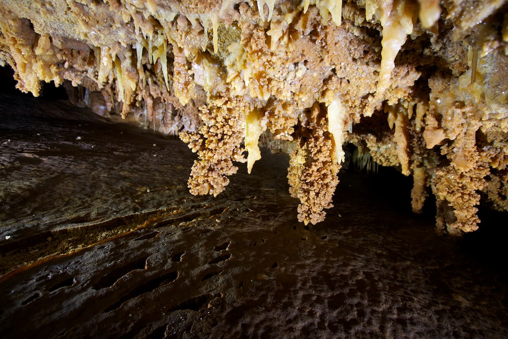 Gli ultimi 15m di galleria, nei quali la volta continua ad abbassarsi fino a trasformare la cavità in un cunicolo impraticabile, sono alquanto disagevoli da percorrere a causa del forte concrezionamento; in questa parte della cavità il suolo appare ricoperto da clasti di piccole dimensioni.