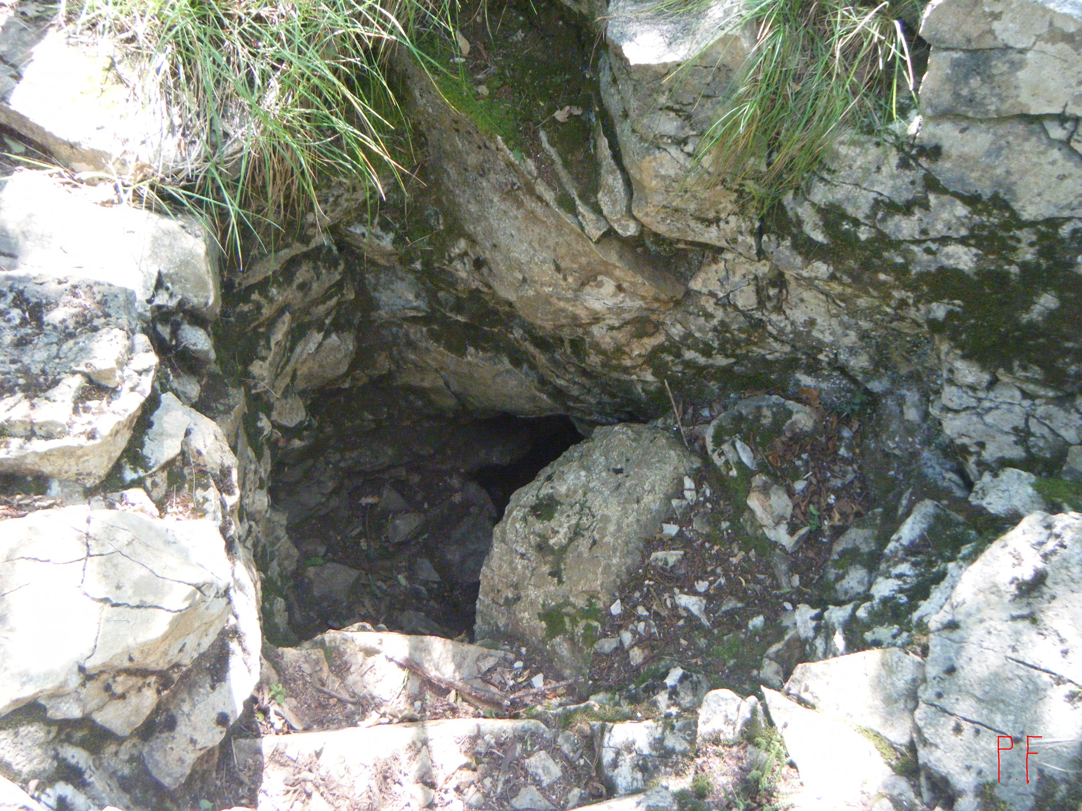 Ad una ventina di metri dall'ingresso il suolo, ricoperto da uno spesso strato di fine terriccio, diventa pianeggiante; dal soffitto pendono alcuni cannelli. La galleria, larga mediamente 5m ed alta 3, si amplia formando un ampio vano il cui suolo è invaso da blocchi di piccole dimensioni, in parte cementati da un sottile strato di calcite. Una grande colata riduce sensibilmente la sezione della galleria. Sulla sinistra, uno stretto passaggio sfocia sulla sommità di un breve salto; dopo pochi metri, costeggiando la colata calcitica, la cavità presenta una sala i cui assi maggiori misurano 10mx5m. Uno stretto passaggio, largo 1m ed alto appena 40cm, immette nell'ambiente più vasto della cavità, che misura 40m di lunghezza per una larghezza che varia dai 10 ai quasi 15m. Dal soffitto pendono lunghi ed esili cannelli ed imponenti gruppi di colonne sembrano sostenere la volta che, per una trentina di metri, si mantiene alta mediamente dai 4 ai 7 metri, per poi innalzarsi bruscamente fino ai 15-17m. In questo punto lo spessore di roccia che separa la cavità dall'esterno è sicuramente inferiore ai 5m. Il suolo di questa ampia caverna è ricoperto da uno spesso strato di calcite, ed è complicato da numerose vaschette, formazioni stalagmitiche ed imponenti tronconi colonnari, caduti orizzontalmente e cementati al terreno. Al centro della caverna, in corrispondenza di un camino, si innalza per circa 5m un tozzo gruppo stalagmitico.